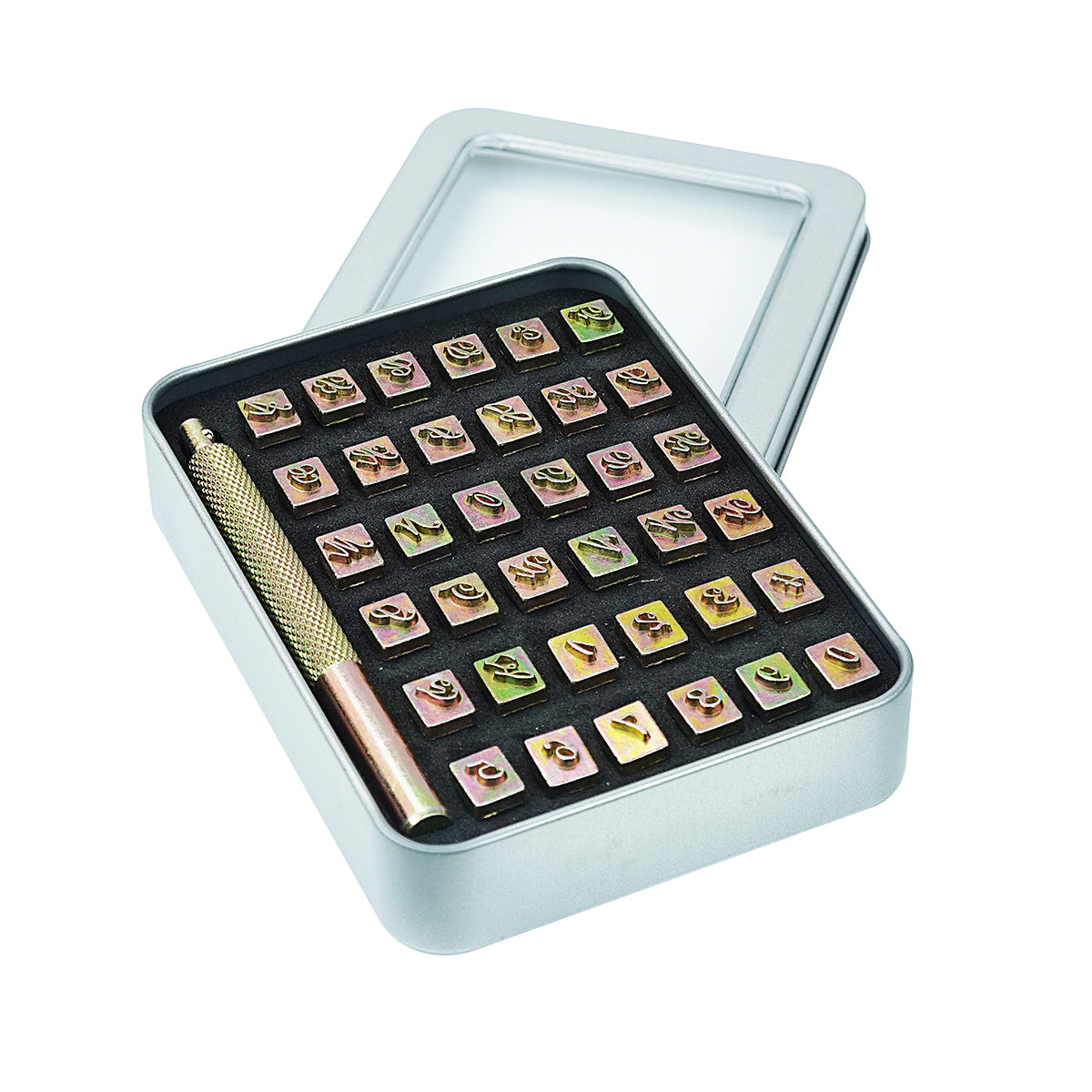 BESTNULE 37pcs Leather Stamps, Leather Stamping Kit, Leathercraft Stamping Tool Set, 26PCS Capital Letter Leather Stamps 5.5mm + 10pcs Number Stamps 6mm + 1 Stamping Handle for Leather Craft