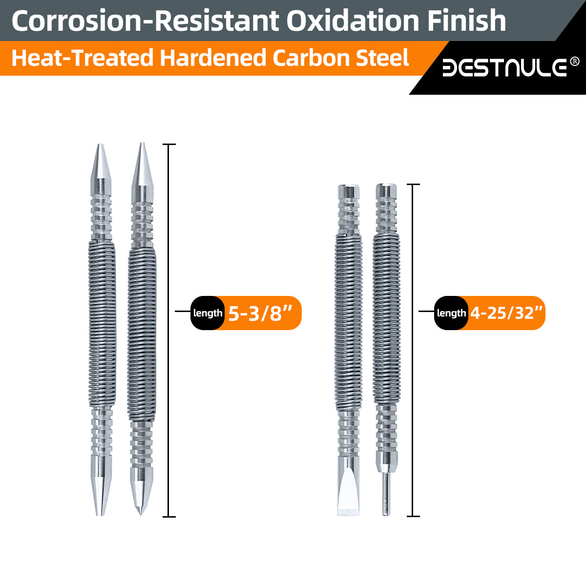 - 🔧【Wide Applications】: (1) Dual head nail setter: for quickly punching holes in the wood to be used for marking. (2) Dual head center punch and nail setter: can be used on any sufface (either wood or metal) and the powerful impact allows it to punch perfectly centered, highly visible marks on the surface.