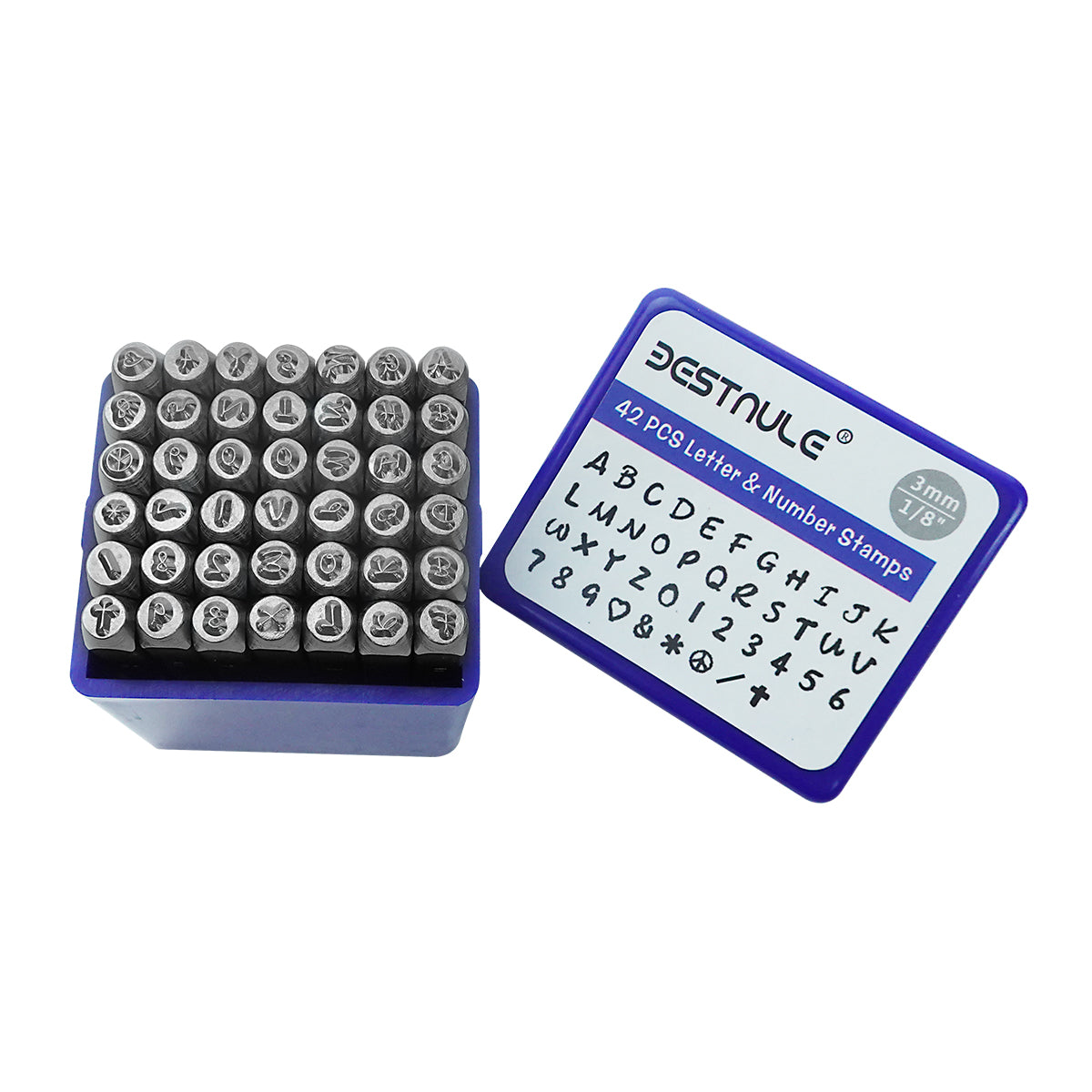 BESTNULE 42PCS Metal Stamping Kit, Number and Letter Stamp Set (A-Z, 0-9 and"&","Love" Symbol), Industrial Grade Hardened Carbon Steel, Perfect for Imprinting Metal, Wood,Leather (1/8", 3MM)