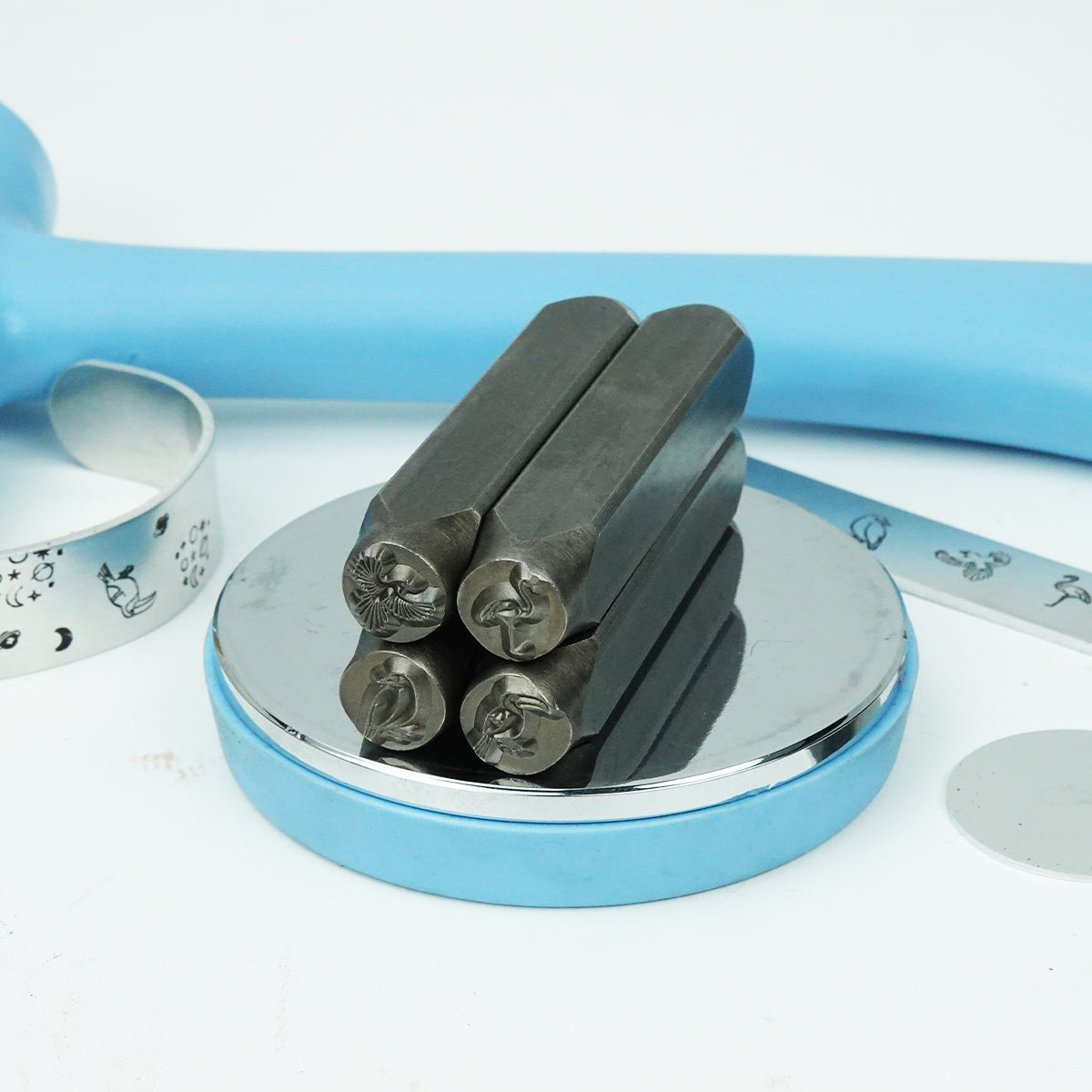 BESTNULE 4pcs Metal Design Stamps Punch Stamping Tool, Hard Carbon Steel Tools to Stamp or Punch Metal, Jewelry, Clay, Leather, Wood (Forest Animals 1)